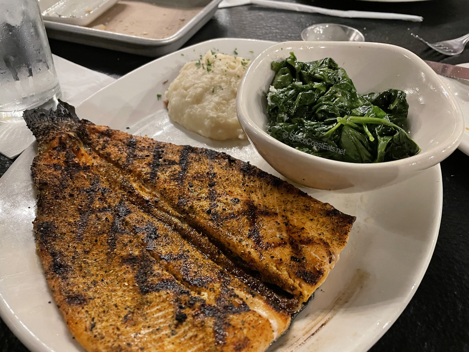 The trout was light, flavorful, and tender. The mashed potatoes were creamy and full of garlicky flavor. The spinach was a bit bland compared to everything else.